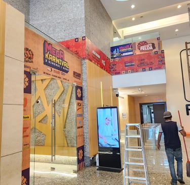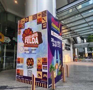 Dari lif ke lobi — visual penuh warna, mesej jelas, dan semangat FELDA 69 tahun diserlahkan melalui reka bentuk kreatif dan pemasangan berkualiti tinggi.